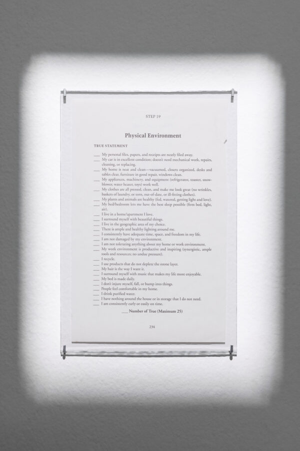 She draws upon themes including questions of bodily and mental wellbeing, self-optimization, and living through the lens of social media. By consciously picking at the seams of her found and fabricated texts, Lippard makes us acutely aware of the fragility of language as a tool for conveying meaning and sense. She exposes its flaws, its oddities, its double entendres, and its potential for misinterpretation through series of calmly obsessive utterances that bear an affinity to the iconoclastic literary experiments of the Dada movement.” – Lambda Lambda Lambda