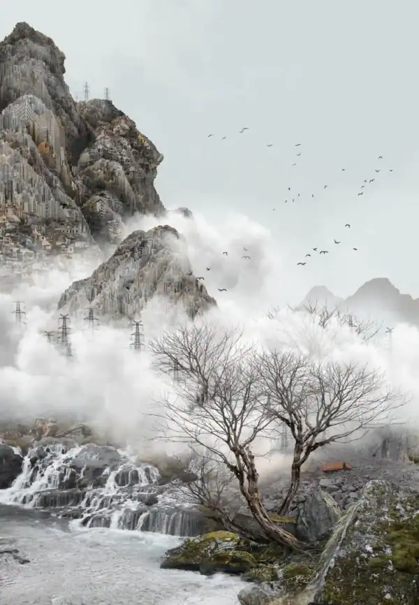 In my practice, I bring two disparate environments into coexistence, creating staged interventions that induce uncertainty and complicity in equal measure, announcing themselves as fictitious yet compelling a suspension of disbelief. The images in the “Land/s” are not created using a simple montage technique. They are, rather, the result of endless journeys across two continents and the subsequent transportation of these images into an alternate natural landscape, by the sea, in the mountains, or in the forests, where the composition of the picture acts as a link between what is in the foreground and what is in the background, sometimes exposing and sometimes obscuring the way the picture was constructed. I consider how the intimate relationship between mankind and nature can create new narratives related to issues on global migration. How landscapes could have Human/geographical narrative meaning.” – Gohar Dashti