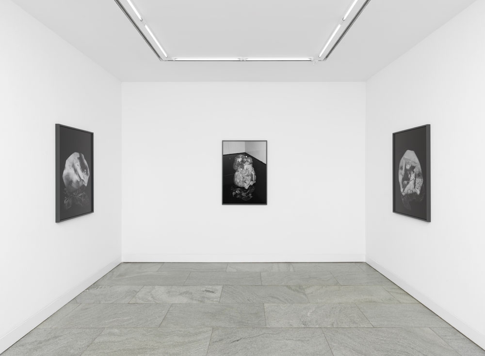 The large-format black and white pigment prints make the front of the gallery extreme, objects’ on black mirrored glass surfaces. Carlsen, who works with electronic pens on tablet computers, collaged self-portraits with undefined material record and won the gestural vocabulary of Photoshop photo editor, z. B. from the time-consuming Blur, an old-masterly precision. The artist designs a raw, amorphous materiality, meat, metal and combined concrete like textures with partly futuristic surface structures. As a former crime scene photographer NYPD Carlsen has a sensitized access to post-mortem appearance of bodies and contrasts figurative details like eye sockets, noses and ears with coarse cracks and blood-like stains. A job is at times more than 200 photographic templates Step by step in a comprehensive, lasting up to six weeks imaging are combined. While earlier in the series are strategies of resolution and defacing of skin transitions in the foreground, then back breaking and transformation of the human body and its Utopian into Flipped materiality to the fore.