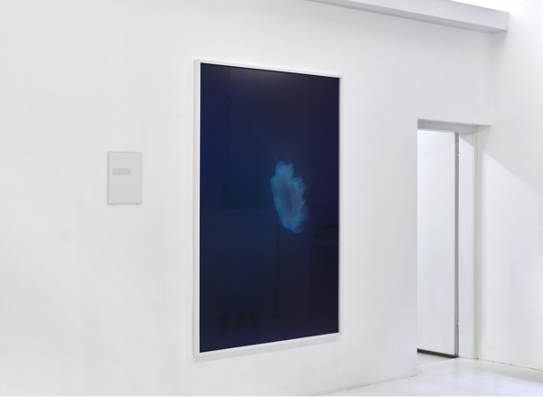 In Eleven Works Daniel Gustav Cramer presents the spatial constellation of his works between various fixed points that link distant geographies, their landscapes and direct contacts with their residents. One of the starting points is a series of four photographs, Eyjafjörður (2018), which show various colorings and transparencies on deep blue. Their location is explained by a brief text that describes how the original film negatives have been taken by a man who lives in Iceland. During his trips onto the fjord, for several years he shot underwater photographs, and archived their resulting negatives and contact sheets. With these images, the man unconsciously mapped the space between the two shores of the fjord, with his childhood home on the one side and his current place of residence on the other. Daniel Gustav Cramer’s display and their contextualization unfolds a structure of memory that goes beyond the visible water formations. As frozen moments, the photographs attest to the crossing of actual distances by the small boat drifting across the fjord as well as the intersection of past and present.