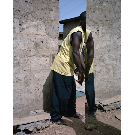 These portraits combine the spontaneous with the staged, and often come out of ideas that Sasson carries in a sketchbook of inspirations for future compositions. These ideas are shared with her subjects as the starting point for each photograph. Critic Vince Aletti commented, “Her photographs tease convention but with witty and unexpected results, partly because her subjects are all young Africans who seem to have enjoyed collaborating with her. She tends to treat the body as a sculptural element — a malleable shape that combines with blocks of shadow and bright color in arrangements that sometimes read like cut-paper collages, bold and abstract but full of vibrant life.”” – via Danziger Projects