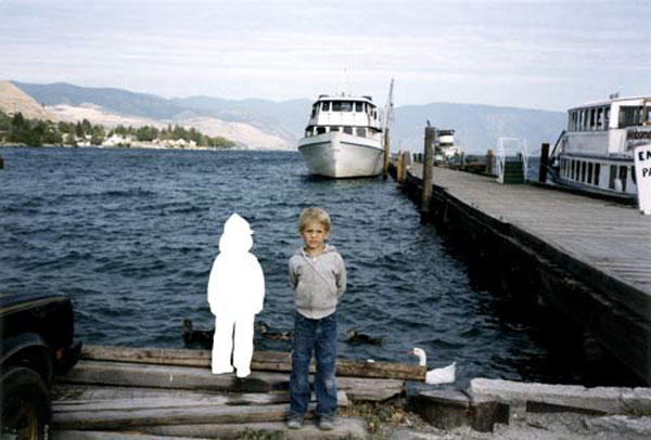 “I cut out my likeness from each photo as a way of reimagining the moments and to reconcile unremembered or painful past moments with my present self…The photographs are open-ended, ambiguous, and dishonest.” – Aaron Gustafson