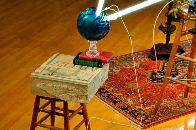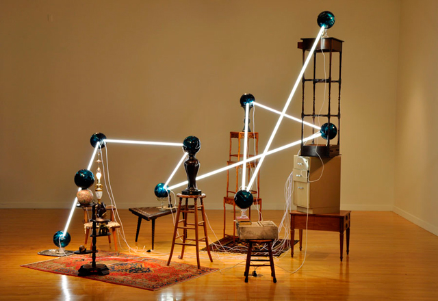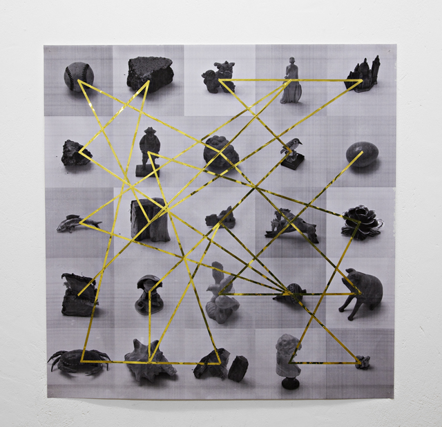 Through his precarious installations he takes away the presumed function of the chosen object, instead transforming it into a mere aesthetic whim.