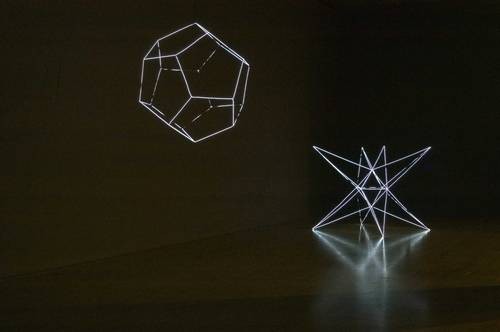 Since the early 2000s Bulloch has been creating increasingly ambitious sculptural installations made from ‘pixel boxes’. Developed by Bulloch with engineers as a prototype in the late 1990s, the pixel box is made up of luminous tubes and an electronic control unit housed within an industrially produced wooden or metal casing. Elemental units within an ever-expanding body of work, the pixel boxes form the basis of a variety of structures, from towers and floors to monumental screens which translate scenes from cinema, television or entirely abstract sequences as mesmerising colour compositions that change before the viewer.” – text via Galerie Micheline Szwajcer