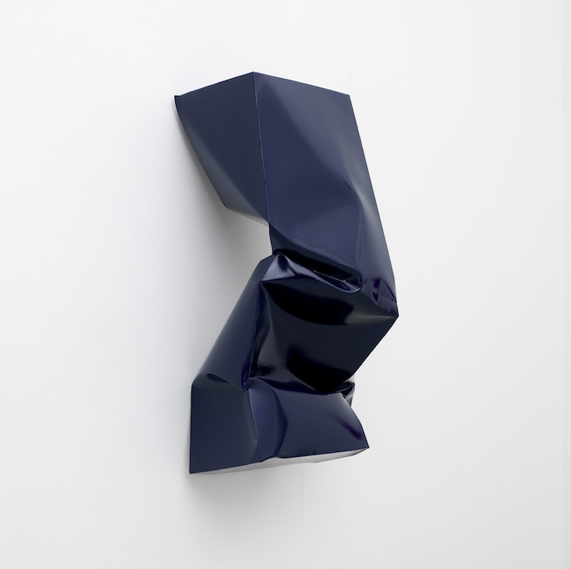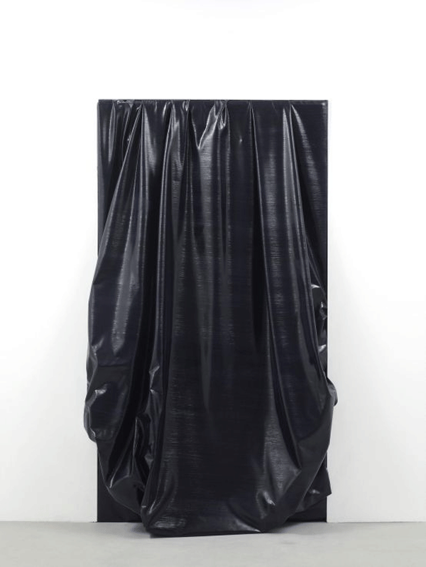 Fiercely emotive, de la Cruz’s work examines the language of painting and sculpture, challenging the established norms and testing the boundaries of both mediums. De la Cruz’s work is both unapologetically raw and darkly humorous, possessing a physicality that is as much influenced by the work of comics such as Jacques Tati, Charlie Chaplin and Harold Lloyd as it is by the visceral nature of Goya’s painting. Through violent interventions she anthropomorphises her work, manipulating and deconstructing her canvases and materials so that they appear broken, crumpled and collapsed. Twisted and deflated, her works lie as crushed or crumpled bodies on the gallery floor and wall. –Lisson Gallery