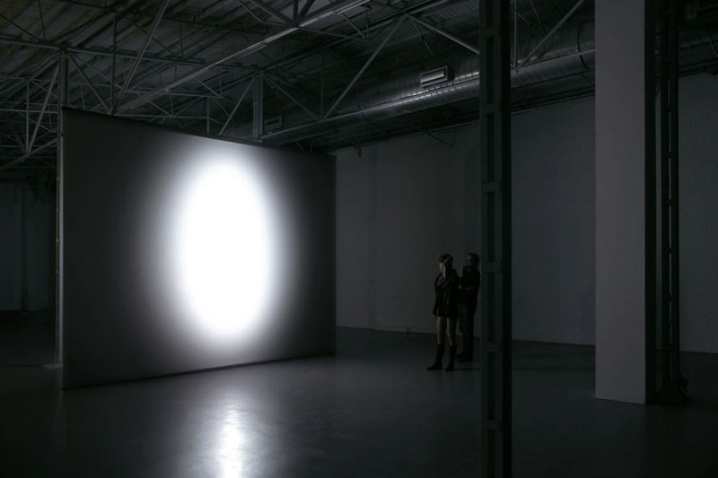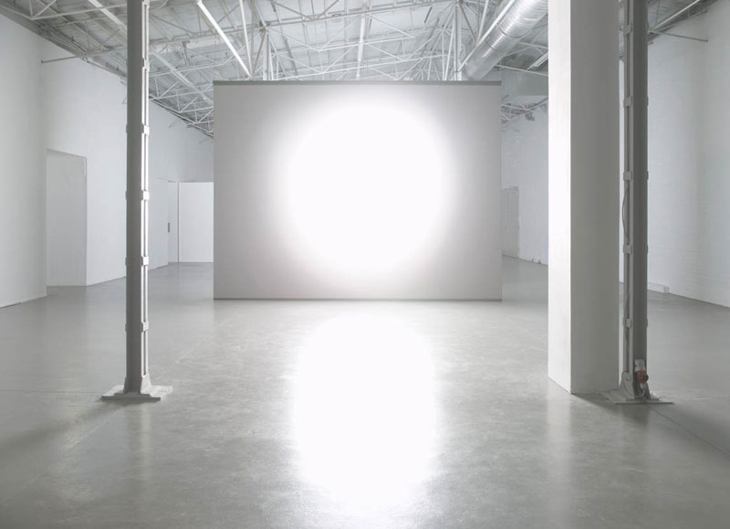 “Ann Veronica Janssen’s artistic practice can be understood as a research expedition into the sensory experience of reality. The artist, who lives in Belgium, uses various artistic techniques and disciplines–installations, projections, films, urban interventions, photographs and sculptures–and invites the viewer to enter new frontiers of perception that can shift between such diverse experiences as vertigo or the disorientation of a blinding white-out. Her minimalist works emphasize the fleetingness, transience and impermanent character of the visible. Her use of all-encompassing light effects, blinding colors or translucent, reflective surfaces destabilize a sense of physical matter and reveal the ultimate instablility of the perception of time and space. In her often-jarring installations, Janssens finds sensual approximations for such nebulous ideas as emptiness, immateriality and the infinite.