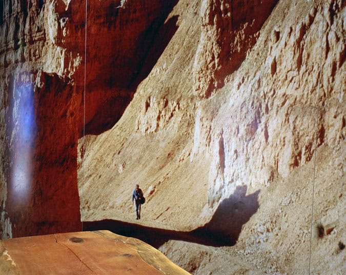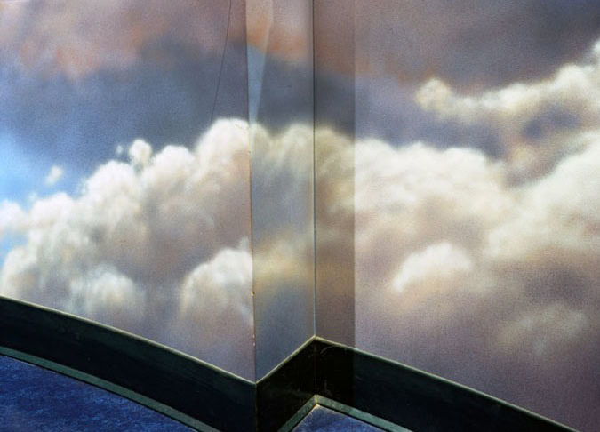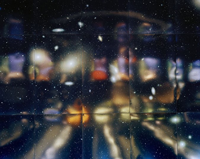 “Anthony Lepore’s New Wilderness is a series of photographs that lay bare nature as an historical construct governed by human invention and intervention. Although these images often suggest collage or post-production alterations, they are produced with a 4 x 5 camera in visitor centers and on the edges of designated wilderness. In his “landscapes”—which are as often the capturing of a mountainside studded by telecommunication towers as the picturing of “forest-pattern” wallpaper in a ranger’s office—Lepore is showing us our own misunderstanding of the environments we are prone to find ourselves in. He points to our most ridiculous attempts at cultivating, domesticating, and aestheticizing nature, and finds (in the crevices, along the seams) the sublime beauty of human carelessness. He knows it is not the diorama of the California desert that needs to be seen, but the lone branch that stretches beyond its frame to touch the pale white wall just beside it. The branch fails at being the image of nature it is cast to portray. Or does it successfully achieve the signification of liberation we press upon nature to deliver us? The uncanny dialogue of a soda machine with the Grand Canyon, or a fire alarm that appears (as a UFO? a satellite?) in the outer space model insists on our own intervention in what nature is. Nature is never at a remove from our own impression of it. It is, like these images, a series of maps and pictures.” – Ryan Kelly