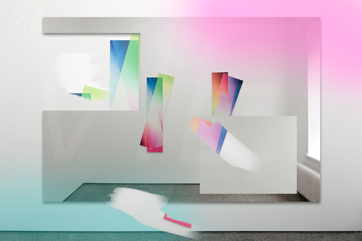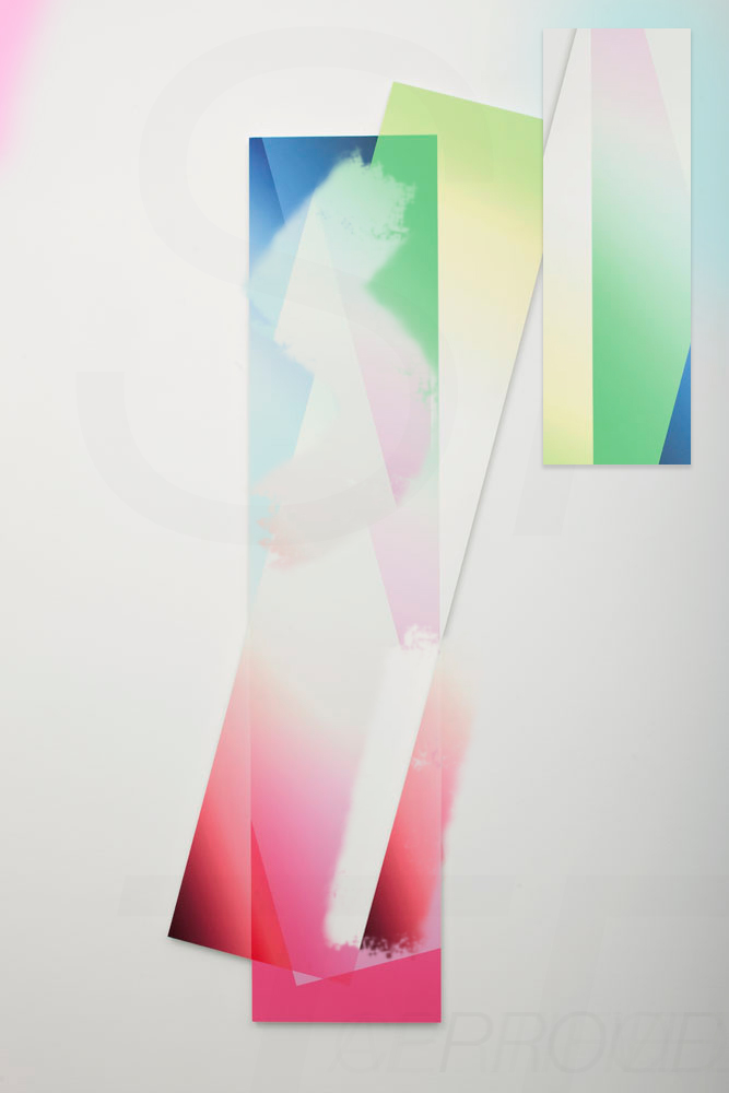 Each time the pieces are documented officially (i.e., by the artist or by a gallery), the documentation photos are altered to create a new form which does not accurately represent the physical object, and generate new derivative works that build upon the initial objects. The viewer’s experience becomes split between the physical encounter in a gallery setting and the countless variations of the objects circulated in prints, publications, and on the Internet. The documentation becomes a separate work in itself, incorporating elements of collage, techniques commonly used in professional image retouching, aestheticized digital watermarks, and more.” – Artie Vierkant