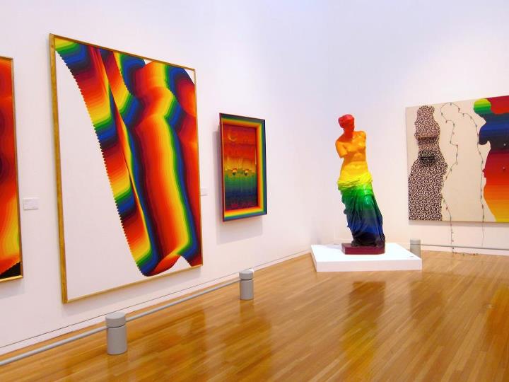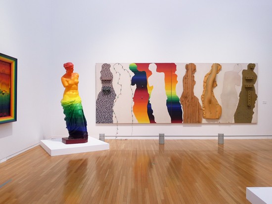 “Classical busts blasted with rainbow gradients. Ay-O pushes delineated stripes to their decorative end games. Turn vertical/diagonal OP on its side and it give a spanking. His Rainbow oeuvre differs significantly in feel from his more traditional Fluxus work, but doesn’t lack that play and discovery. Birds of Paradise vibes. Add one mana of any color to your pool. Summer is here.