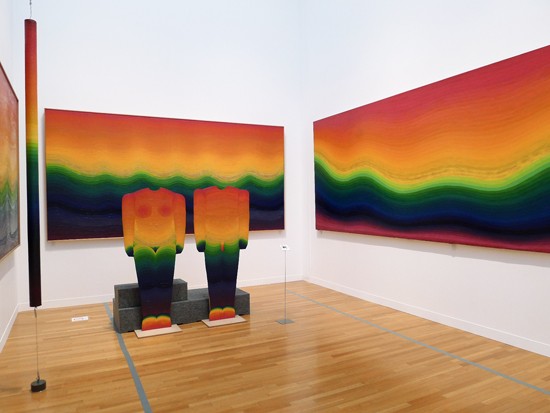 Born in Ibaraki Prefecture in 1931, Ay-O, together with Masuo Ikeda and others, was active in the Demokrato Artists Association during the fifties, attracting notice for his brightly-colored oil paintings. In 1958 he moved to New York, where he used tangible objects to try to create dialogues with the world that can perceived through the senses, resulting in his ‘finger boxes’, in which a finger is inserted into a hole in the side of a box to feel the material hidden inside, installation works that incorporate their surrounding environment, etc., going beyond the confines of the painting to produce works that appeal to the five senses. During the sixties, when everyday things or actions were translated into art, Ay-O received attention for his pioneering installations that he called ‘environments’. As a member of the Fluxus movement, which went beyond the narrow divisions of genre to include musicians, poets and artists, its activities extending to performances and printed works to establish the foundations of today’s diversity of art, he worked with such people as Yoko Ono and Nam June Paik. Finally, he rebelled against the concept of creating works consisting of lines, instead filling his motifs with the colors of the spectrum, from red to purple, giving birth to his ‘rainbow’ works, becoming famous throughout the world as the ‘rainbow artist’ subsequent to his exhibition at the 1966 Venice Biennale. Ay-O’s struggle with the rainbow was expressed in a variety of genres including prints, paintings and installations, and still continues to the present day. This is the largest-ever exhibition to be held of his work, presenting numerous paintings from the rainbow series, an interactive installation that people are invited to appreciate through touch, a new work that is 30 meters in length and contains a rainbow consisting of 192 colors, a 300 meters long banner that was suspended from the Eiffel Tower in 1987 and recordings of his performance works. The gallery will overflow with Ay-O’s optimistic world. – Tokyo Museum of Contemporary Art