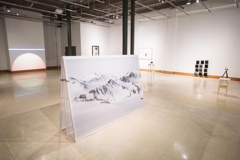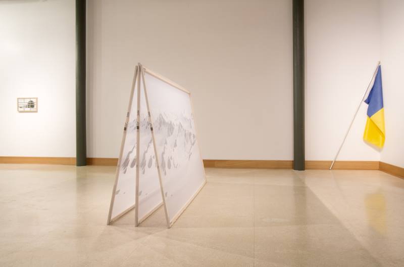 “Midnight Sun responds to the ill-fated true story of the Andree Polar Expedition of 1897, in which three explorers set out to be the first to reach the North Pole using a hot air balloon. After crashing on the arctic ice halfway through the journey, the three explorers survived the next few months in the arctic, continuing to photograph and record their observations of the landscape. These materials and the bones of the men were found on a remote arctic island thirty years later. In the face of death, what was it that urged these three explorers to continue to make photographs? Through reinterpreting this historical event, Midnight Sun investigates the mirror effect between the landscape and the photograph, and how each informs our understanding of the natural world and ourselves. Using photographs sourced from stock imagery, beach towels, Google image searches, and original imagery, I explore how photographs mediate nature in the contemporary context. Exploring cultural, scientific, and personal themes within the story of these three explorers, I question my own perceptions of nature and the ways in which photography becomes an expression of the precarious desire to understand and to communicate.” – Brooks Dierdorff