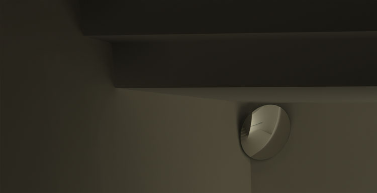 Narrative and cinematic movement were always important to me, and the first 3-D works I did were in fact animation loops that were output to video. Nevertheless I quickly became fascinated and obsessed by the great detail possible in still images. The sense of imminence and the implication of the covert, of a beyond just out of reach, is of central importance to me. This is what leads me to say that the spaces I depict are in a way haunted. I do love the almost cheap or tongue-in-cheek sense of mystery involved, but the emptiness of the images speaks to a sense of absence and loss that works on many different levels, and I think loss is very important to technology in general.