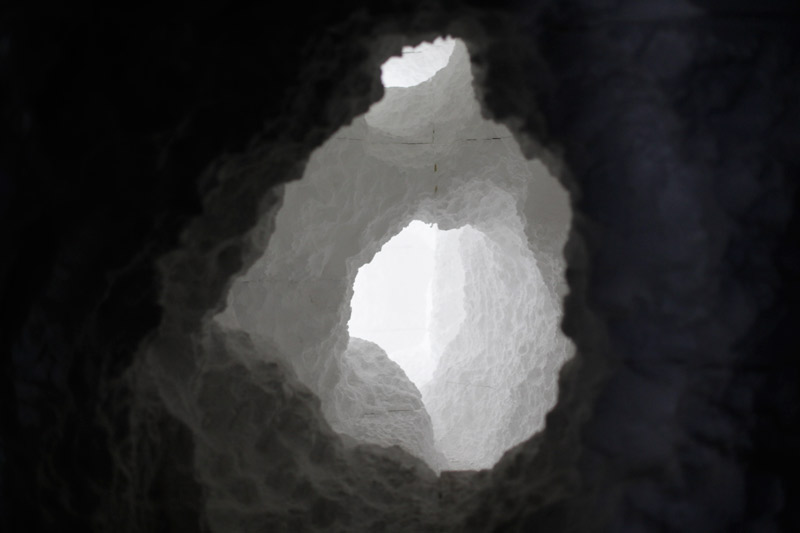 “Dig is an exhibition and performance at Storefront for Art and Architecture by Daniel Arsham/Snarkitecture that explores the architecture of excavation. Storefront’s distinctive gallery space will be filled with a solid volume of EPS architectural foam, engulfing the existing interior in an unyielding flood of white. The volume will then be excavated using simple tools – hammers, picks and chisels – to transform a stock industrial material into a strange, unexpected cavern for both work and play.