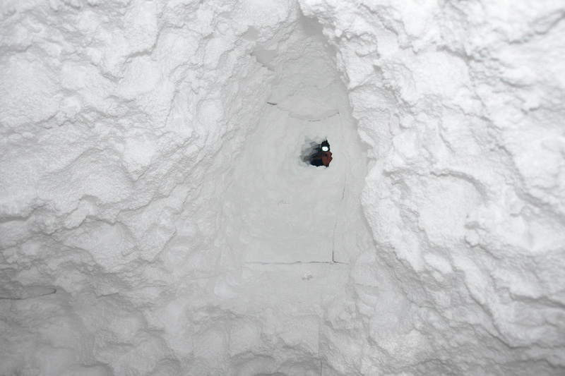 Dig is an experiment between the precision of the architectural plan and the looseness of the unknown. The installation and performance explore an intersection of primitivism and contemporary architecture; the complexity of the final surfaces and form suggests a digital origin and conceals the simplicity of a space made entirely by hand. The solid volume is excavated and inhabited by basic necessity, but also engages in careful play with the existing architecture of Storefront. Dig uncovers the inconceivable within the conceivable.