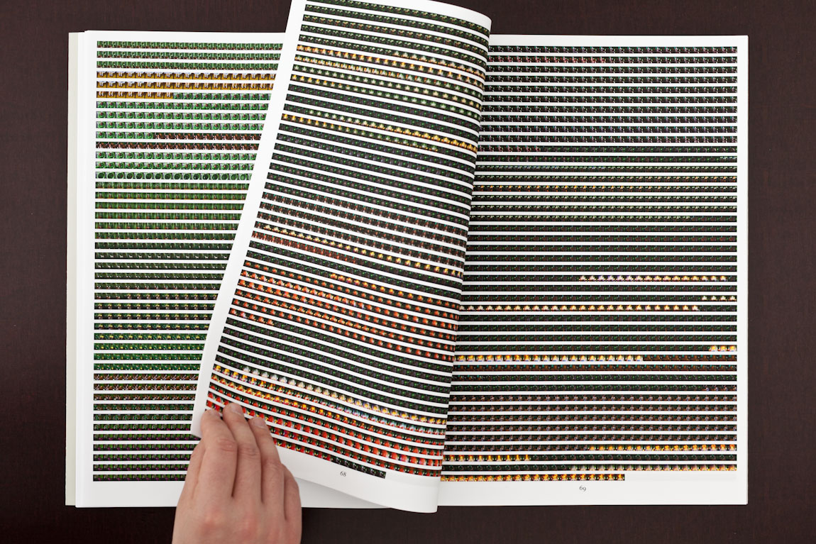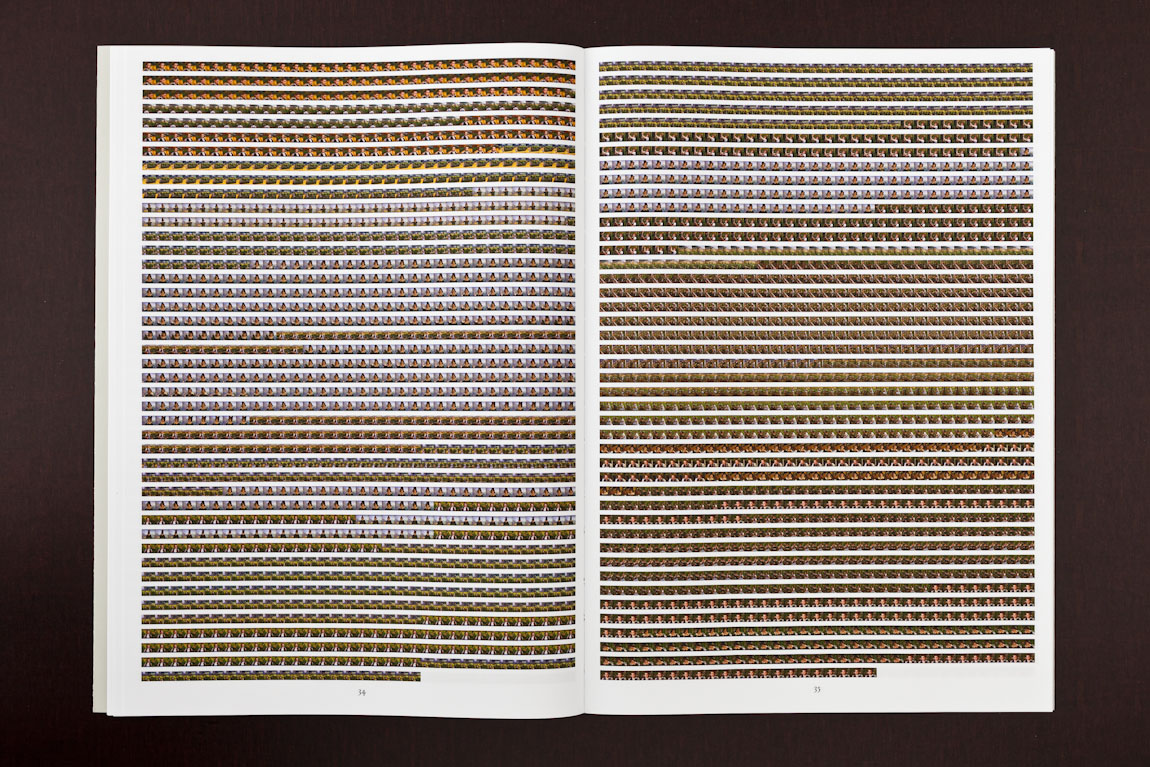 In the book, “The Wizard of Oz”, all of the 140,000 filmstills of the movie are published. On 98 pages the images are arranged chronologically in rows from left to right. One page contains 1440 pictures which correspond to exactly one minute of film. So the page numbers also show the minute of the film from which the stills were taken.” –