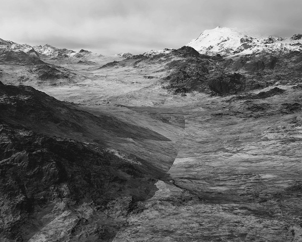 While his monochromatic landscapes evoke awe of the sublime, something darker lurks in the crevices. The photographer draws on the language of nineteenth-century geographical surveys but presents a bleak twenty-first-century equivalent, where everything can be digitally rendered, and where measurements and numbers are the point of departure, not a goal of the endeavor. Through dark-hued landscapes and high-contrast portraits of rocks and shiny minerals, Nikonowicz not only calls into question the physical properties and realness of the earth’s building blocks, but also the way in which a distrust of images has become inherent to our experience of the world around us.
