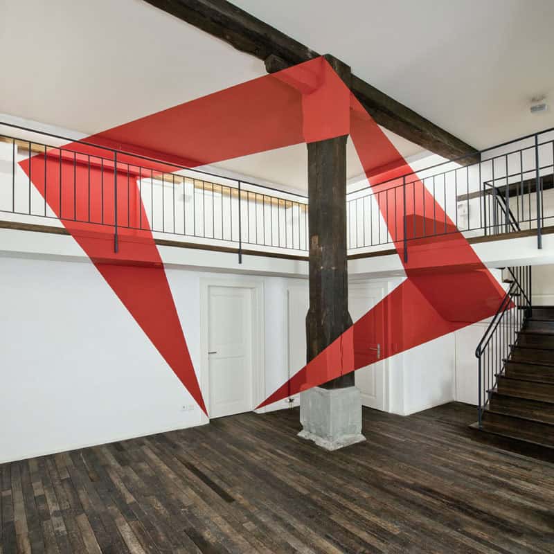 If I establish a particular relation to architectural featers that influence the installation shape, my work still preserves its independence whatever architectural spaces I encounter. I start from an actual situation to construct my painting. Reality is never altered, erased or modified, it interests and seduces me in all its complexity. I work „here and now“.” – Felice Varini