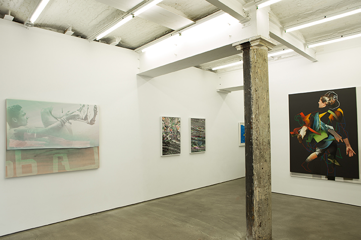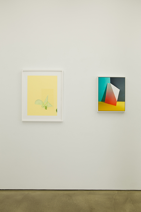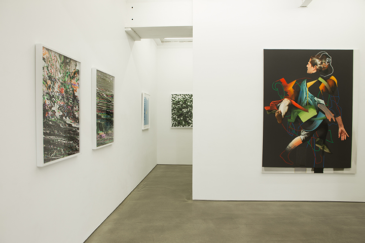 into a corrupted form of the original image. Stone’s process introduces a genetic copying error that exposes the photograph to evolutionary forces. In another line of inquiry, the fixed technical image becomes a base layer upon which a construction of the self is built in response. Pieter Schoolwerth’s paintings compress multiple attempts to locate the body and identity over an edited photograph or a scan of a human figure, like an attempt to form an identity across multiple networked platforms. Wendy White modifies the real world contextual staging of a photograph and injects it into a system of painting structures as a self-contained object that lives in forced cohabitation with indefinite marks and textual remainders. Lorne Blythe, Erin O’Keefe, and Heather Cleary each appear to accept the fixed technical image on its own terms, but insist on forcing their own complicating system of change through the camera’s pixel sieve. Lorne Blythe creates atypical vision tests in which construction and appropriation methods are simultaneously placed into opposition and made indistinguishable. Heather Cleary decontextualizes mundane objects to create an image embedded with uncertainty through what appears to be a very particular set of instructions of mysterious mathematical or subcultural origin. Erin O’Keefe invents an unbound architectural language by arranging a network of objects and photographic elements for the camera, rendering unreliable spatial relationships into a single plane.