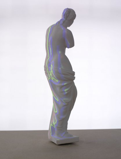 “I am photographing constructed objects made of different materials, such as paper cuts, prints, foil, paint, metal, wood etc. On top of that I project digital generated light which is mapped in realtime on the objects and the scene. At some point the digital process and the materials visually merge into each other. They meet in the same space, but actually remain completely separated things. In this sense, one could say, that Marx’s concept of ‘Doppelcharakter’ or Fetish constitutes itself in the moment of congruence and superposition of diametric opposites. The computer, on the other hand, is the only medium which makes it possible to simulate, automate and temporarily overcome such contradictions. The Turing Machine can be seen as the administrative machinery of the paradox. I believe that’s why it is so successful.” – Frank Eickhoff