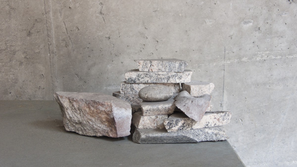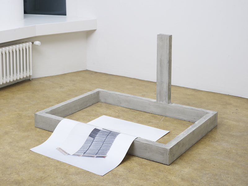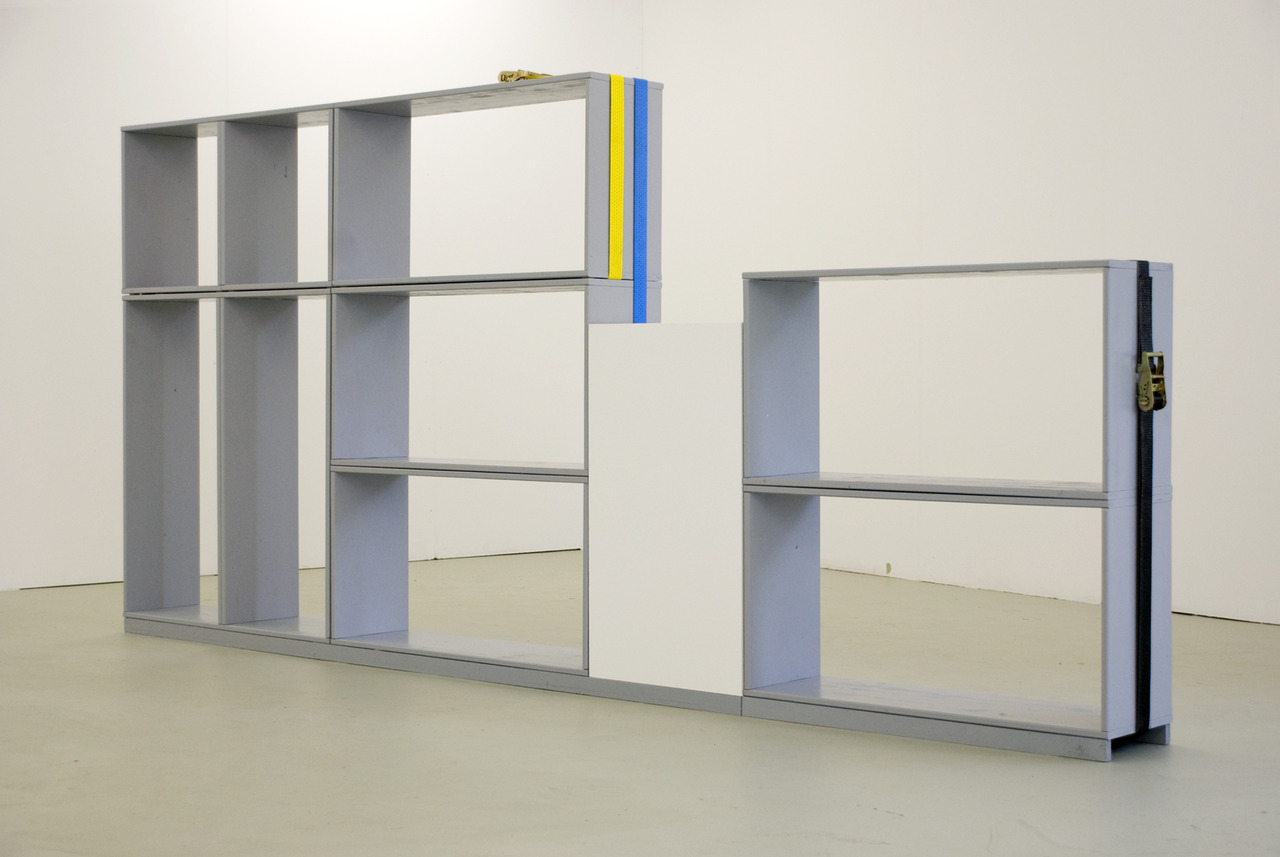 “The exhibition focuses on how we approach and interpret sculpture. Extending across various media, and partly site-specific, Gregory Polony’s work draws on a reduced palette of materials, including found objects, cement, wooden boards, and lashing belts.