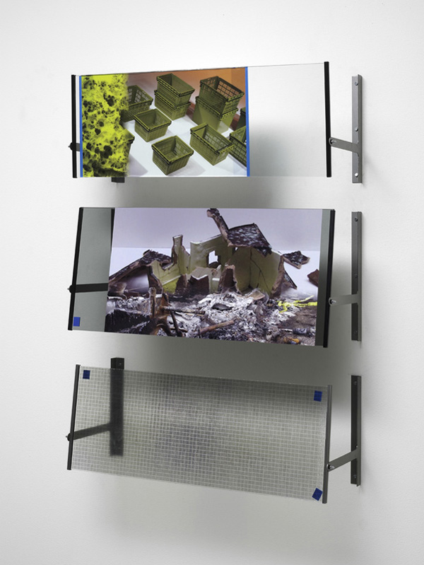 “Hannah Sawtell’s work is informed by her vision of an excess of production- both physical objects and mediated images- leading to entropy. Her wall structures, floor pieces and free-standing objects re-purpose various ready-made industrial materials in thought-provoking, often witty combinations. In her videos she collates found audio and still images from digital sources to make compelling, dystopian ‘songs’ that evoke the everyday surrealism of our 21st century media environment.” – Charles Atlas, Frieze issue 139, 2011