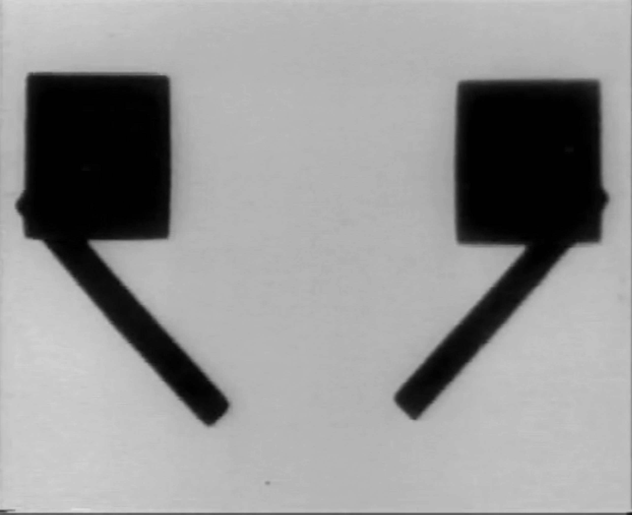 In Rhythmus ’21, generally considered to be the first completely abstract film, Richter used these principles to create a work of remarkable structural cohesion. Completed by using stop motion and forward and backward printing in addition to an animation table, the film consists of a continuous flow of rectangular and square shapes that “move” forward, backward, vertically, and horizontally across the screen. Syncopated by an uneven rhythm, forms grow, break apart and are fused together in a variety of configurations for just over three minutes (at silent speed). The constantly shifting forms render the spatial situation of the film ambivalent, an idea that is reinforced when Richter reverses the figure-background relationship by switching, on two occasions, from positive to negative film.