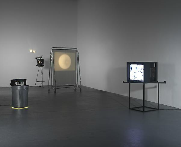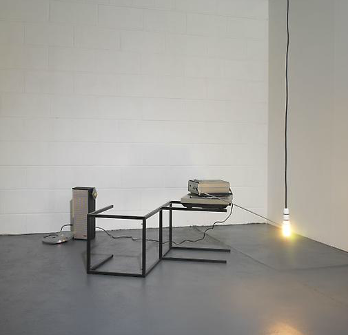 “In his work Haroon Mirza attempts to isolate the perceptual distinctions between noise, sound and music and explores the possibility of the visual and acoustic as one singular aesthetic form. These ideas are examined through the production of assemblages and sculptural installations made from furniture, household electronics, found or constructed video footage and existing artworks combined to generate audio compositions. The subject matter of his work pivots around socio-cultural systems such as religious faith or club culture and their relationship to music.” – Lisson Gallery