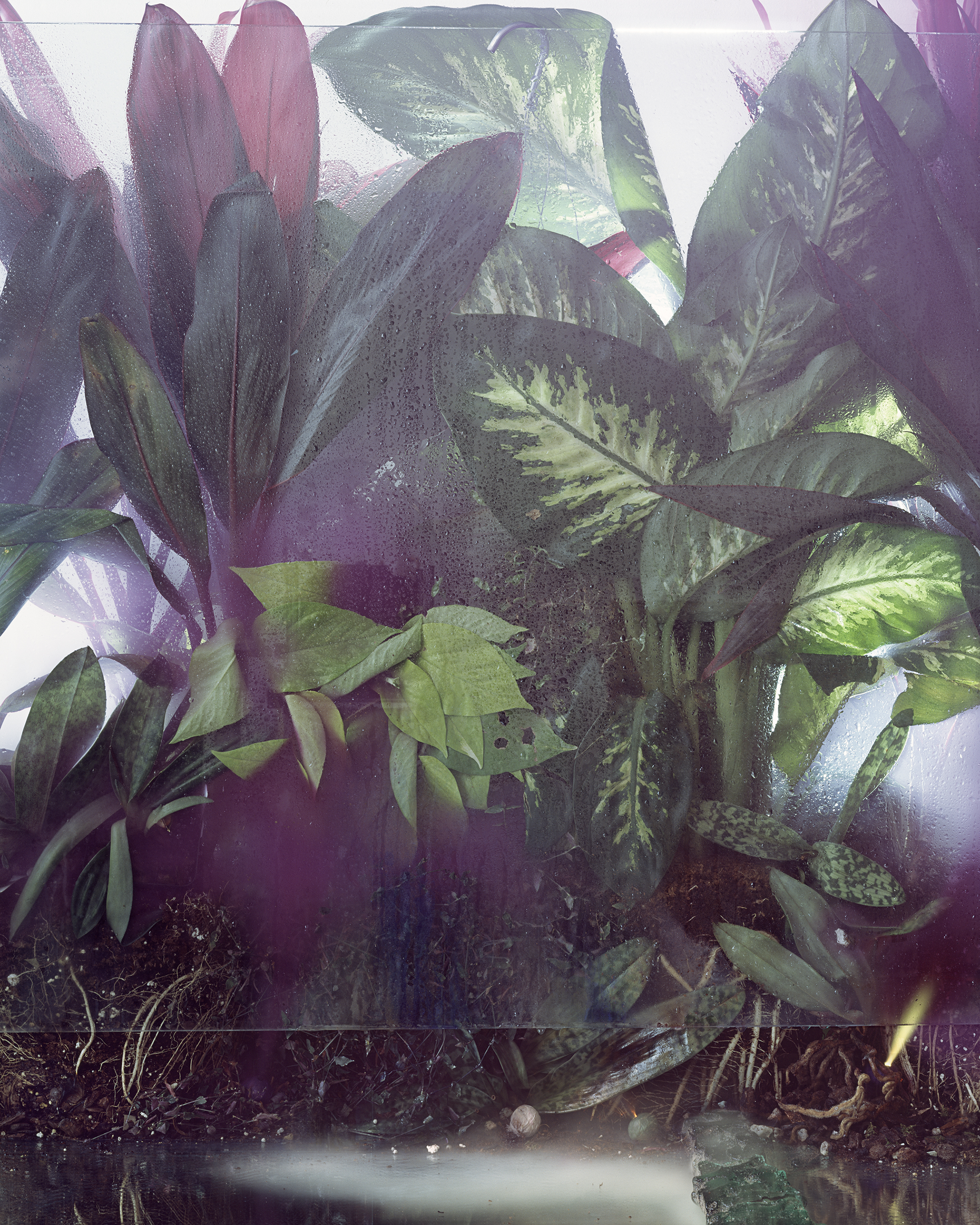 Plants and light become the primary mediums, as does glass, resin, wax and detritus (literally dirt from my studio floor). The plants act as a metaphor for larger, macro ideas of nature and its ecological cycles–of its impermanence and futility. Houseplants are encased, pressed, or “frozen” using materials that speak directly to histories of preservation. Light and it’s phenomenological (via the viewing experience) and physical effect, go hand in hand. The silver halide crystals of a photograph can trap light, just as the photoreceptors of a plant absorb light during photosynthesis. As the plants move through ecological spans of time, the works’ physical form expands and compresses.