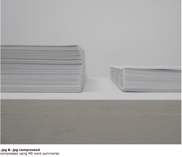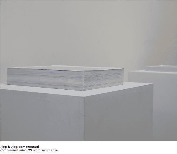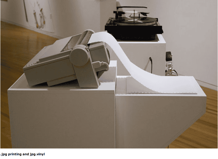 “All digital files are made up of information. This is the biggest difference between what is virtual and what is physical. .jpg is an acknowledgment of the digital information that creates what we view as an image. Beyond just acknowledging the image information, the code is manifested in the physical world in several different non-photographic forms. These non-photographic representations of a image’s digital information draw attention to the sheer volume of information needed to create these image files. .jpg also redefines the parameters of a ‘photograph’. None of the output is arranged as what is commonly recognized as a photograph; but at it’s core, what the audience experiences is derived from an image captured with a camera.” – Jacob Riddle