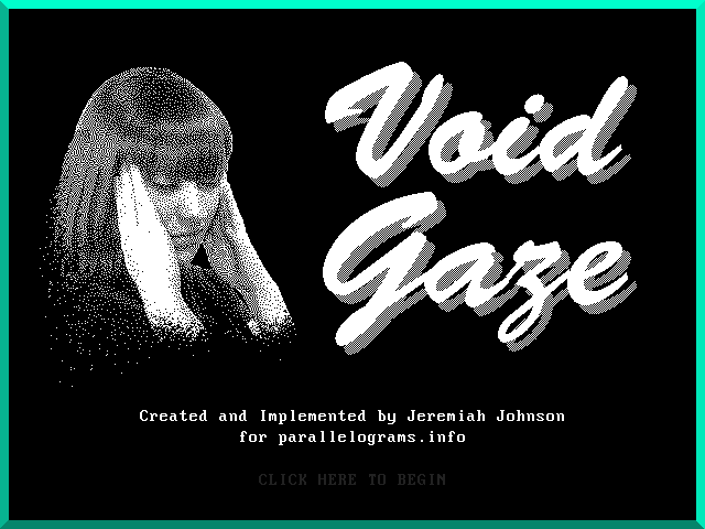 “VOID GAZE is an interactive text experience with an accompanying series of computer drawings by Jeremiah Johnson. In the style of early text adventure games, the player uses words to interact with the gameworld by entering them at a command prompt.