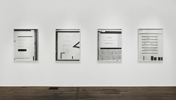 His photographs are as much built as they are taken. They function as a result of their material construction and as a document of their making. While subject matter is constructed for the photographs and materials are registered on film, the frame of the camera shifts, crops, translates three-dimensions into two, and functions as a documentary device. Signs all but fail, the photographs operate like sculpture, and the frame of the camera is reflected by the relationship between subject and object. Viewing the photographs becomes as equally latent with potential as pictorial and material content.