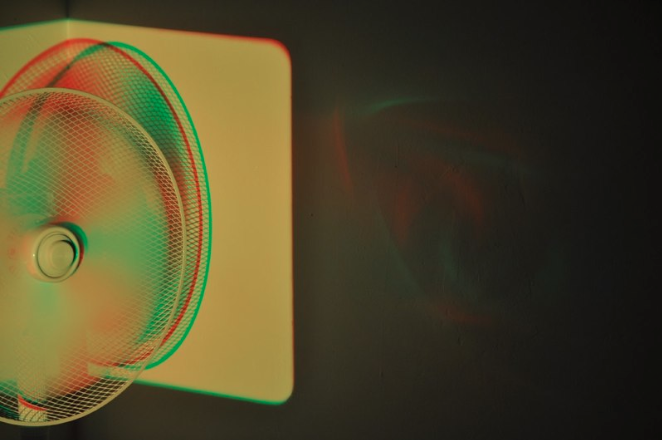Projecting into corners and onto domestic fan blades, I create illusions of dimension and motion that paradoxically negate illusion, prompting the viewer to negotiate a direct, problematized confrontation with space, matter, and time: what you see is not what there is.