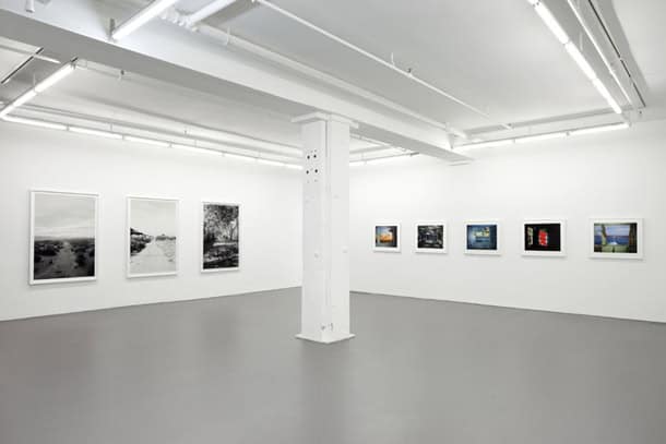 The sway between a structured, observational approach to image making and the free-form, improvisational gestures of his interventions is very much at the crux of Divola’s practice and can be traced from his earliest foundational work of the 1970’s to more recent bodies of work such as Dogs Chasing My Car in the Desert (1996-2001), where Divola documents the dogs that chased his car while working in the Southern California desert; As Far as I Could Get (1996/1997), where Divola sets up a camera and runs away from it during a given exposure; and Dark Star (2008), where his melding of intervention and observation continues to be in the foreground in large-format, color work made during the last decade.” – Wallspace Gallery