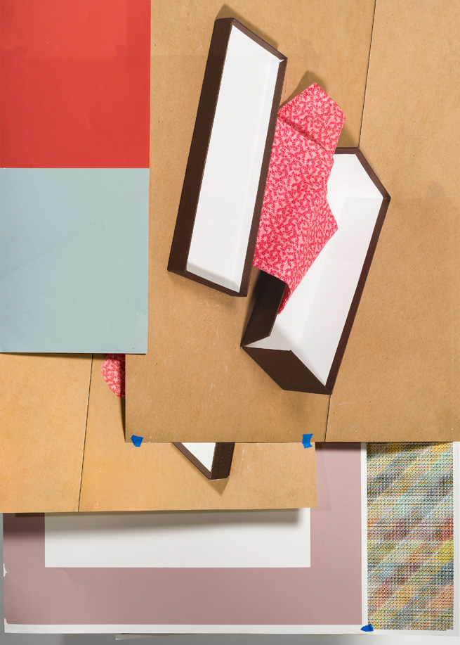The exhibition expands upon Houck’s body of aggregate photographs, presenting still life imagery of personal objects and keepsakes intermittently spliced with Houck’s ongoing body of digitally-rendered, gridded and folded compositions. As in the aggregates, whereby Houck exploited a repetitious process influenced by his professional experience as a programmer — a feedback loop of write, compile, execute — here he applies a recursive practice of compose, photograph, print.