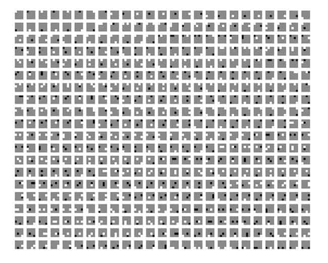 Digital Guide(s) to Photography – An expanding series of books generated with custom written software. The software generates every combination of pixels for a given grid size and set of colors. The project is working toward generating every combination of pixels possible on a modern digital display, thus producing ostensibly every digital photo that could ever exist. This set would even include the image of you reading this text.” – John Houck
