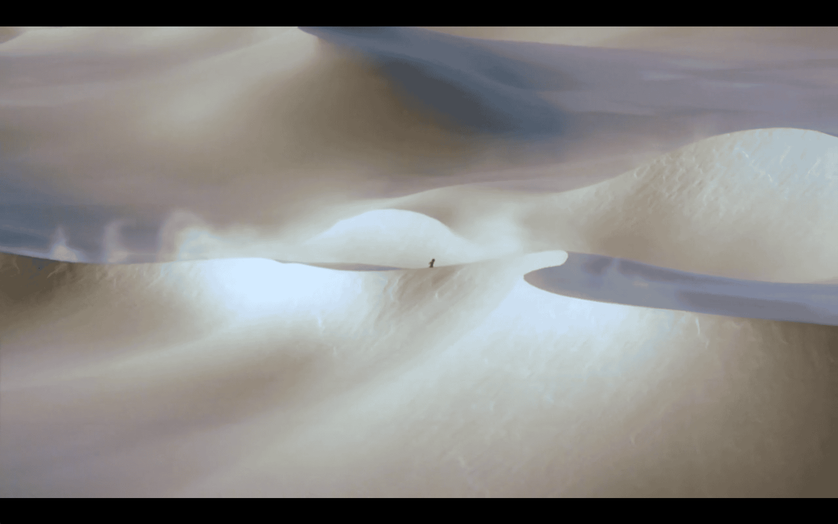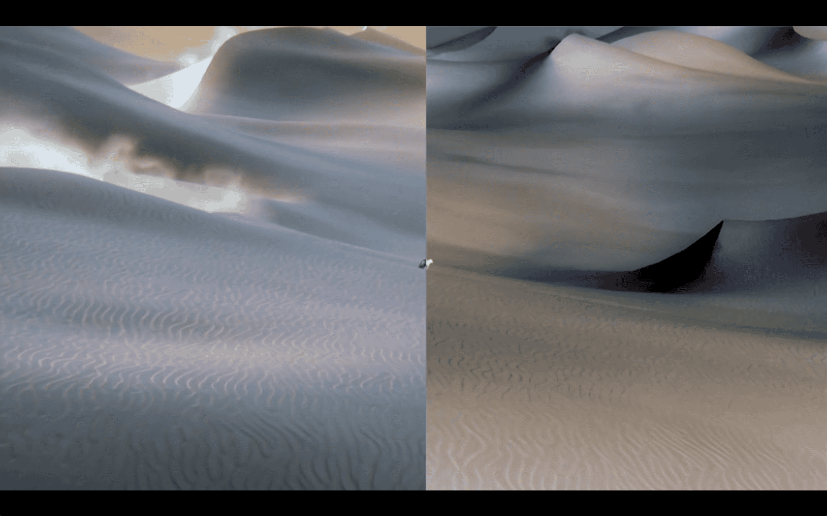 The voyage begins on the swaying deck of a ship in unnamed waters and proceeds through a myriad of different landscapes, from arid deserts to the gaudy interiors of what appear to be Persian palaces, to barrooms and bedrooms—each new scene unfolding in sync with the narrator’s melancholic remembrances. As in other works by Rafman, a feeling of alienation and loneliness structures the story, with the narrator searching for a connection and yet unable to grasp what is real or stable around him. In Remember Carthage, the filmmakers emphasize how digital media makes history seem both totally accessible through archival information and, at the same, completely foreign to us. Here, the narrator’s search for the abandoned town is rendered increasingly futile as he traverses a landscape where markers of time and place often appear to be unmoored, floating signs. And, as his journey continues, he becomes unable to distinguish authentic sites from simulated versions.