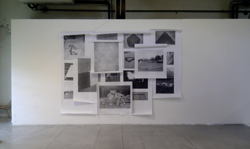 “I have a recurring attraction to architecture, furniture exhibition, the objects may be poor as sculptures involuntary. With the materials recovered or derived from the world of DIY, I create sculptures low-tech resulting from a chain of connections formal and simple gestures. They are usually accompanied by images that repeat, prolong them, or connect the shift to time throughout history. By mixing my own achievements and items recovered my images to images collected (taken from the infinite iconographic now available to us) I like a bit much to devalue the authorship. The exposure devices which I tend to consist of fairly basic pieces of works that I use to rearrange the space. I must admit that I struggle to make room (independent self) and what interests me is just as relations between the sculptures (and images) that the sculptures themselves. The latter, often re-interpreted, provide an inventory of spare parts in which I draw to build a territory. I like the idea that art can be done with different tools as a laptop or a saw Jig.” – Josue Rauscher translated via Google Translate.