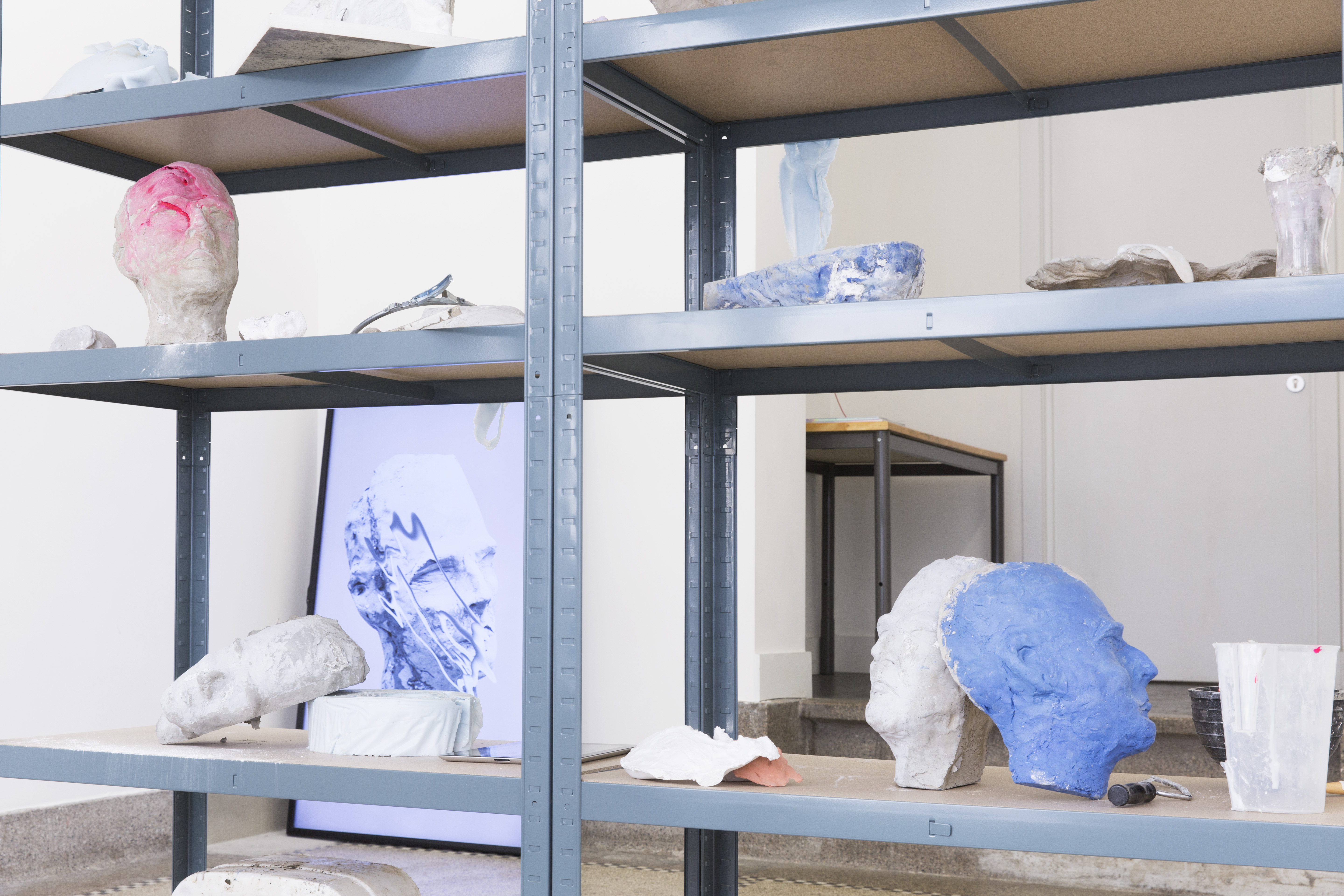 “Most of the things have been photographed. Images circulating amongst the photo documentations or collections projected on the screens of our devices originate an obvious debate over the presence of art and objects being reproduced in the hybrid reality. Their saturation in the networked cycle is on a thin line between the physically existing and the scarcely visualized. Distribution of an immaculate hi-res replica will not replace an impression of seeing the original piece but it possibly will turn out to be equally or even more exciting. What happens to the museum objects when turned into souvenirs to be acquired by visitors? And what is the relation between a prototype and its perfect copy made from entirely different materials? A mould that can be cast repeatedly. On the occasion of her solo exhibition, Justyna Wierzchowiecka converted partially her apartment into an atelier to make her own interpretation of bas-relief by Jef Lambeaux featuring a scene of ‘Human Passions’ produced between 1886 and 1898, now on display in a classicist tempietto pavilion by Victor Horta.