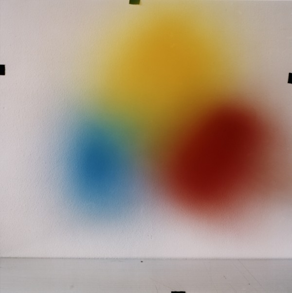 “In the series Celebrating RGB Color Space, I create stretched exposures while colored object are photographed while being made to move. The emphasis is no longer on the catching of a moment, but on the construction of an image during the time the shutter is open. The familiar but peculiar result is that the object begins to blur, it looses its definition, its boundaries, and dimensions. The object sheds its form and becomes disembodied color, floating flat and strange in the context of a 3D space. Through the process, the object is broken, but its photographic essence, its color, is enhanced. These reduced objects become color fields in the purest sense. They are pure color captured on film without the hindrance of physical form. And like colored pigments on canvas, these colored fields can be combined to create blended fields and arranged composition.” – Katja Mater