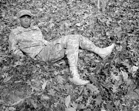 Continuing her interest in large format portraiture, Kristine has garnered access to West Point Military Academy, an Academy that has trained a number of men in her family and has produced a greater number of high-ranking officers and politicians than any other U.S. military academy. She uses a view camera to produce images of cadets that explore ideas about masculinity, expectation, allegiance, sexuality, vulnerability and death, catching them before they are fully formed soldiers and officers. While traditional portraiture of soldiers serves to show their achievements, excellence and their sense of duty, Potter’s images describe the complicated psychologies under their developing personas. She extracts something uniquely emotional about each cadet while also imposing upon the images certain reservations and attractions she has about soldiers in training. The resulting images balance between the languages of the documentary and of the staged with an effect that provides a compelling counterweight to live-feed coverage of our wars and of traditional military portraiture.” – WIPNYC.