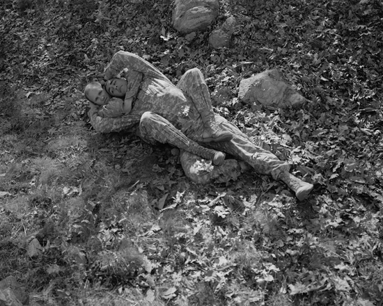 “The Gray Line, Kristine Potter’s first solo exhibition at Daniel Cooney Fine Art, culls from images made during the last four years as she has been mining her complex feelings toward the military, a subject which she has long, familial connection. For many generations most of the men in her family earned their living and defined their purpose as military officers. Growing up in this military culture, Potter’s childhood was saturated with orderliness, hierarchy, patriotism and a certain knowledge of “the enemy”. Being a child (and adult) interested in nuance, culture, progressive ideas and non-conformity, she was often at odds with the governing forces in her life. She says of her childhood, “True respect aside, I struggled to understand war and how one could take command to engage… I wanted to understand the organization of violence and power, and I yearned to humanize the tough exteriors of these men against all of the anxieties I felt when thinking of their jobs and of their structure.”