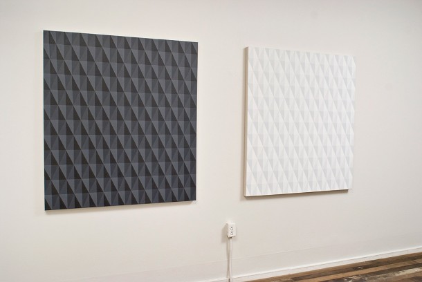 “This exhibit of new works by Laura Piasta uses geometry as a motif to signify a system that can stand in for an abstract concept. Using repetition to focus the viewer’s attention on relationships between forms, one is drawn into contemplation of the conceptual narratives behind the work in a way which goes beyond a rational understanding of them. Piasta’s practice derives from her experience as a dancer, where music and emotions were revealed through the lines and positioning of the body. This same disclosure of concepts through placement of the physical is echoed in this exhibition. By engaging the viewer with the perceptual, experiential and physical properties of the pieces one is able to understand the conceptual framework of the works in a way which touches on a transcendent or an intuitive awareness of meaning.” – LES Gallery