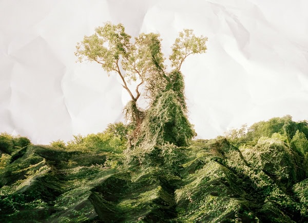 “In this series I am responding to photographs both as representations and tangible objects. Through physically altering enlarged prints and then re-photographing the results, I create works that oscillate between image and object, photography and sculpture, landscape and still life. While they may appear illusory, the resulting pictures are documents of actual events and are thus as authentic as the original representational images contained within.