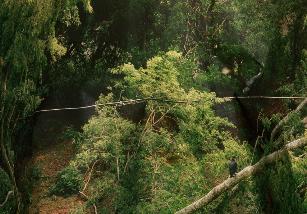 My process unfolds through observation and experimentation – I let the image and its materiality dictate its direction. Playing with paper and with light in unplanned and organic ways, I look for new ways to perceive the space, form, and context of my subjects. In some works, large pieces of the original image are torn out while in others, smaller parts are more subtly altered. I use a large format view camera throughout my process so I can control perspective and record as much detail as possible. Whether focused on a ripped paper edge or a nesting bird, I hope to reach a place where picture elements interact and merge in unpredictable and expressive ways.” – Laure Plageman