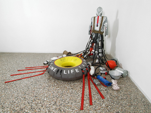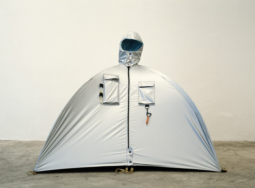 “Her sculptural work investigates the boundaries between the body and architecture, exploring their common social factors, such as communication and identity. Lucy uses the media of sculpture, public intervention, video, and photography to realize her work. Her most emblematic artworks include Refuge Wear and Body Architecture (1992–98), portable, lightweight, and autonomous structures representing issues of survival. Nexus Architecture (1994–2002) is a series of participative interventions in which a variable number of people wear suits connected to each other, shaping modular and collective structures. When recorded in photography and video, these interventions visualize the concept of social links. Urban Life Guards (2004–ongoing) are wearable objects that reflect on the body as a metaphorical supportive structure.” – via Studio Orta