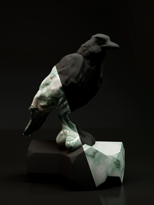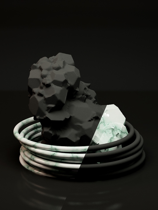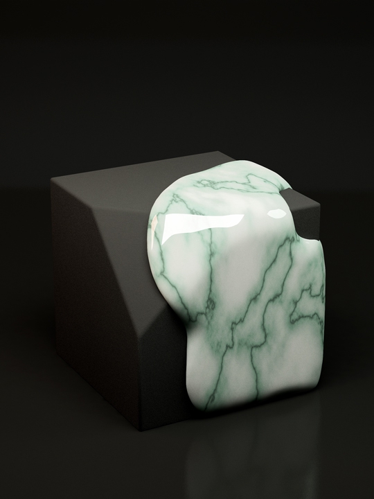 “‘Still Life with Marble’ investigates matter and materiality by juxtaposing digitally sculpted imagery. The series explores current image-making techniques versus traditional crafting methods, questions photo-‘realism’ and the value of physical objects.” – Maiko Gubler