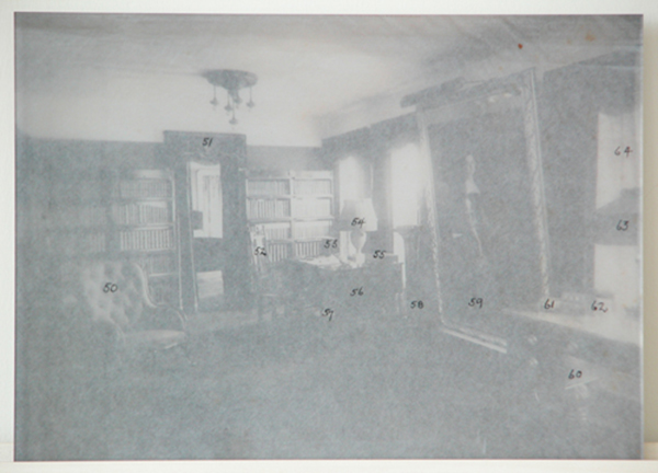 I take an interest in how things become connected (and separated again), and this spills over into the organization of my exhibitions. There is often a kind of quasi-genealogical structure to the way the images become associated with each other in the shows and, in a larger sense, as components of my own body of work. Given the fact that I often select materials from family archives, these connections can be quite literal – Baroness Johanna Kotz von Dobrz, who as a sixteen-year-old made the sketches I discovered and re-used for my work 1862, for instance, was presumably a niece of the missing Prince Auersperg (le Prince Auersperg) from the Ruined Album series, which emerged from a completely separate source and archive. The works Library and Study represent, among other things, systems of classification in two successive generations within my own family. Other combinations of images are less literal and more akin to matchmaking on my part to promote ‘intermarriages’ between families; this was the case when I combined images pertaining to the history of Pompeii with objects from my family and other anonymous images in the exhibition ASH, inc., a meditation on ashes in a variety of their forms and meanings. The idea of ‘Pompeii’ bound the seemingly disparate items together as a metaphor for things cataclysmically lost, long buried, later rediscovered, excavated, and put to new uses. As it happens, this also describes the individual trajectories of most of my works.” – Michael Huey