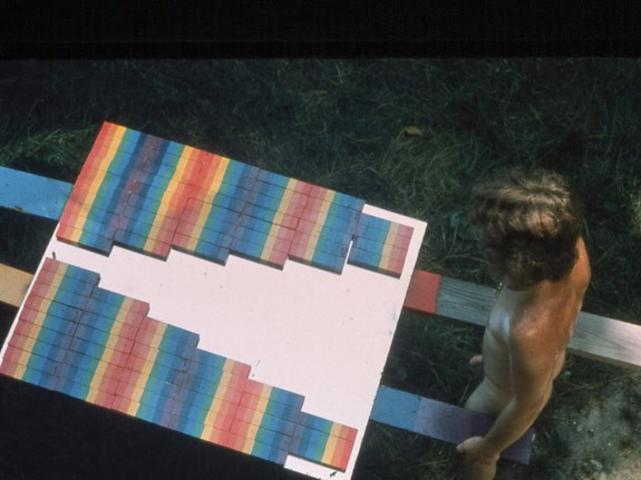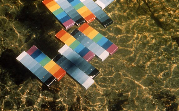 Endless Painting. The existing system of monochrome and spectrum variations can be deployed formally, or as random/chance arrangements; e.g., wind and water, light and shadow, in or out of urban, social, cultural landscapes, to explore and transform the colour bar units in as many media as possible through the expediency of reproducibility. The process is shared through collaboration, documentation, presentation in whole or in part from time to time along the road. The rainbow is a timeless departure point for the imagination. The physics of light and the perception of colour have engaged both artists and scientists.. The colour bar project grew out of informal collaborations in the late 1960’s between artists involved with the Intermedia movement in Vancouver and developed as a model for art and life experiments in the 1970’s. It remains a reference for continuing research.” – Michael Morris