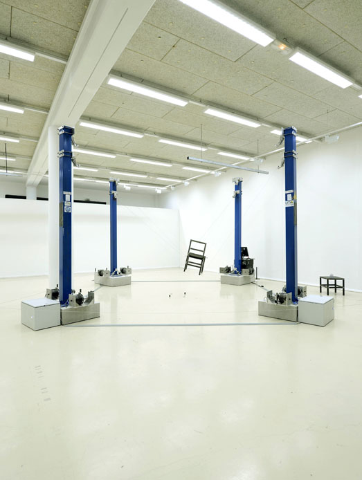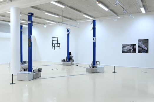 The exhibition is conceived as a heterogeneous group which deals , among other things, flowers, tensegrity , sexual differentiation , casting hard drive , smoke, aliens, roundtrip , garment Egyptian strings, panels twin cork , forest impossible, intensive an extremely slow machine and albino alligators programming.” – Michael Sellam translated via Google.