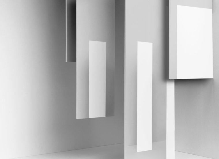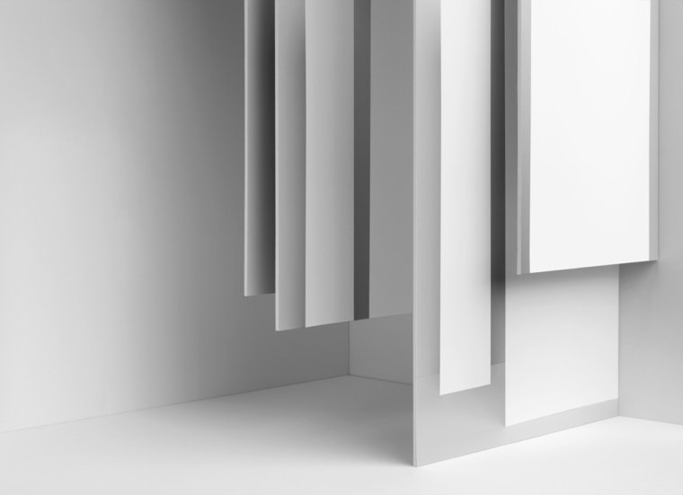 “Miriam Böhm is recognized for producing photographic images of complex, physical arrangements staged in the studio setting. The photographed arrangements are printed, mounted, placed back into the studio set and photographed again and again. The end result achieves echoing forms and disorienting shifts of perspective. Böhm’s playful approach of materiality combined with formal studio techniques create an illusory effect which often confounds the viewer’s point of view.